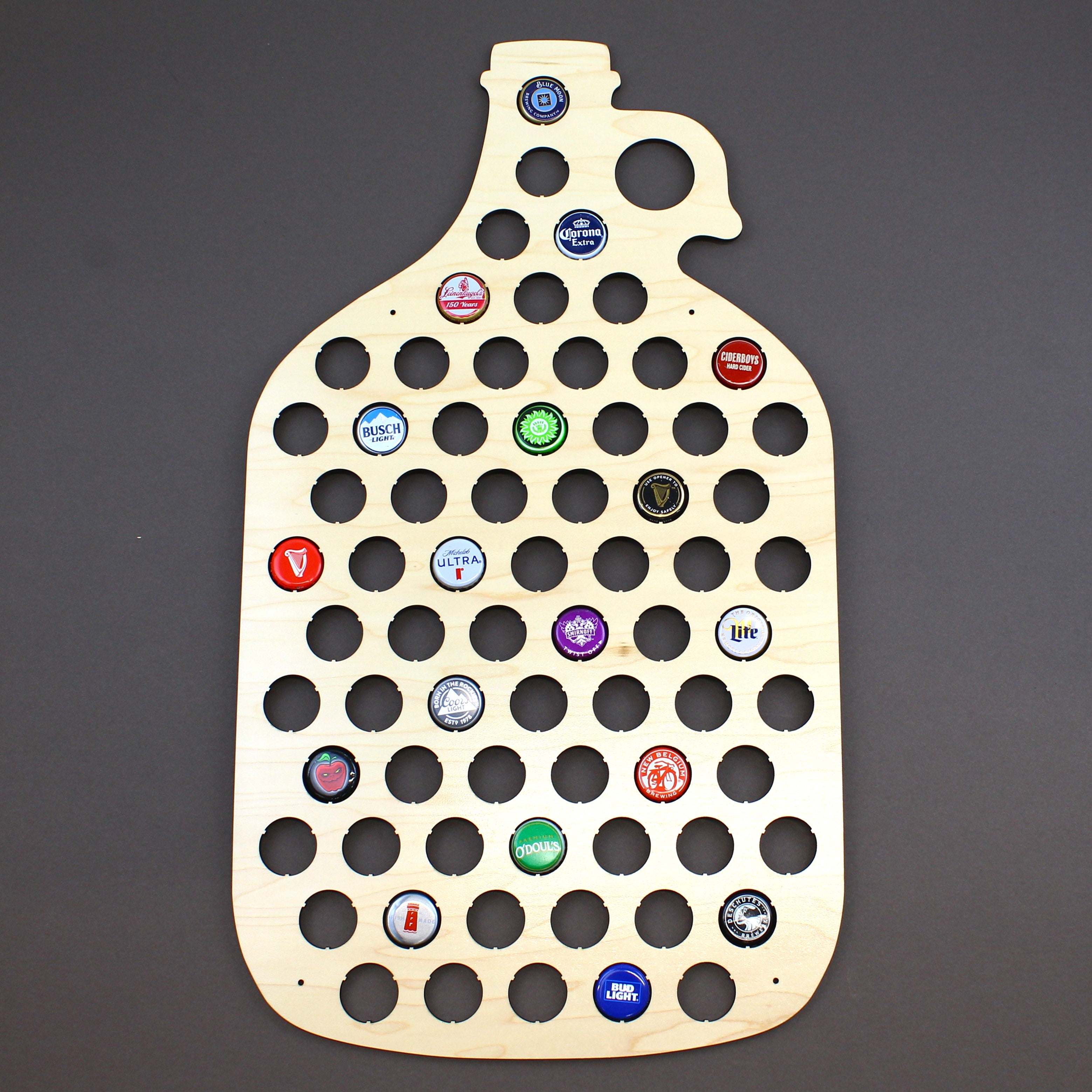 - Our beer cap holders are laser cut from our authentic and beautifully grained Maple Wood with precision and exceptional detail. Each item is beautiful, durable, and ready to hang. The clear coat accentuates the color and beauty of the wood's natural grain. Our wood is strong and sturdy, but lightweight enough to be super easy to hang.