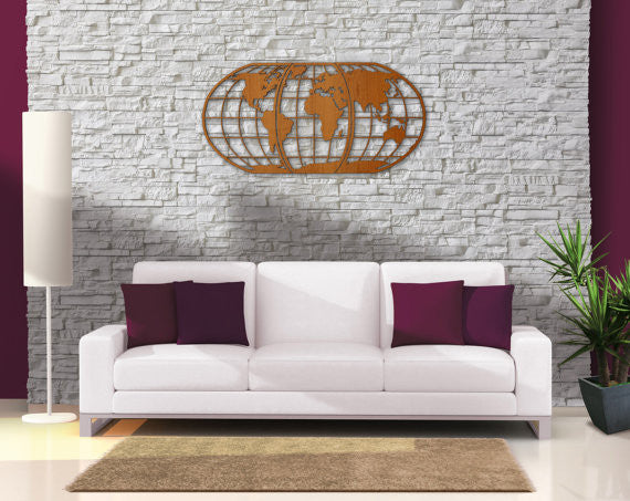 Do you love geography? Need a contemporary and classy piece to fill a large space? This beautifully crafted and intricately detailed world map will look stunning on any home or office wall. The Large option measures over 4 feet wide when hung and is sure to command attention. Buy it for yourself or give it as a unique gift for someone special.